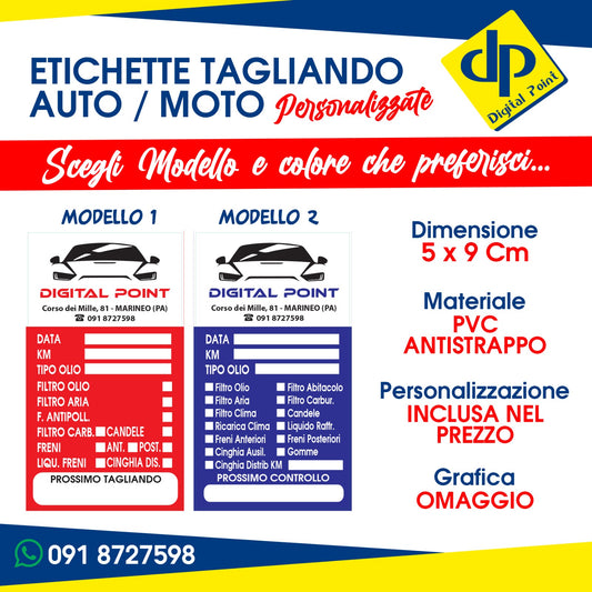 ETICHETTE ADESIVE IN PVC PER TAGLIANDO AUTO